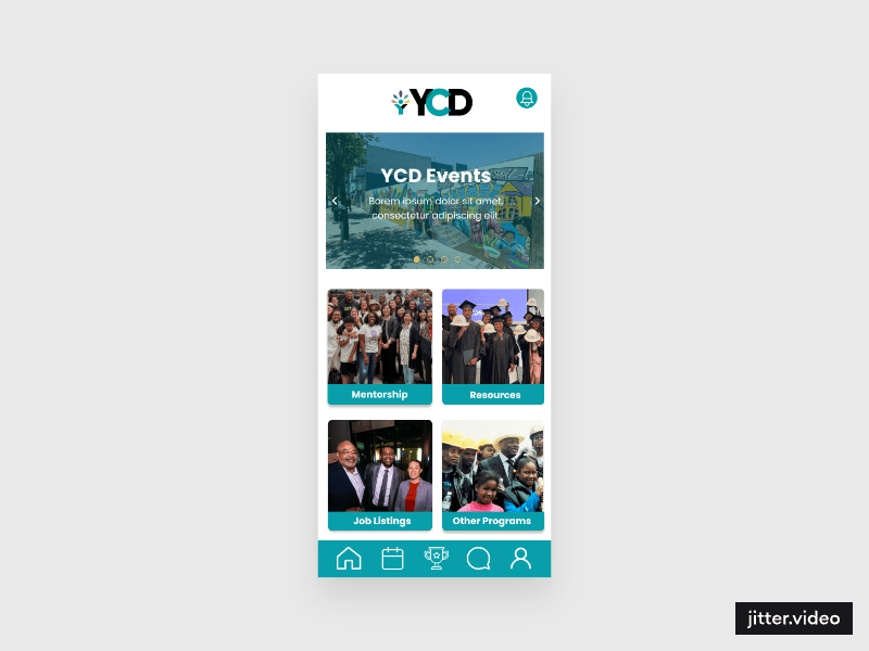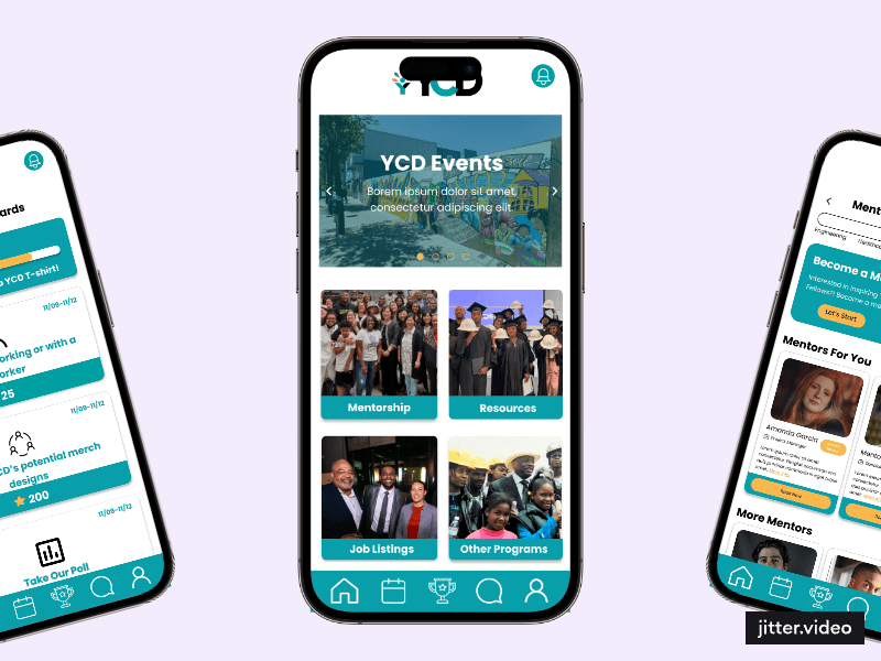 With the ideas created as a team and with the help of the lead designers we decided to create a mobile application. This mobile app is to motivate alumni’s to be part of YCD once again. Incentives such as mentorship opportunities, job boards, additional resources, chats, and community rewards.
